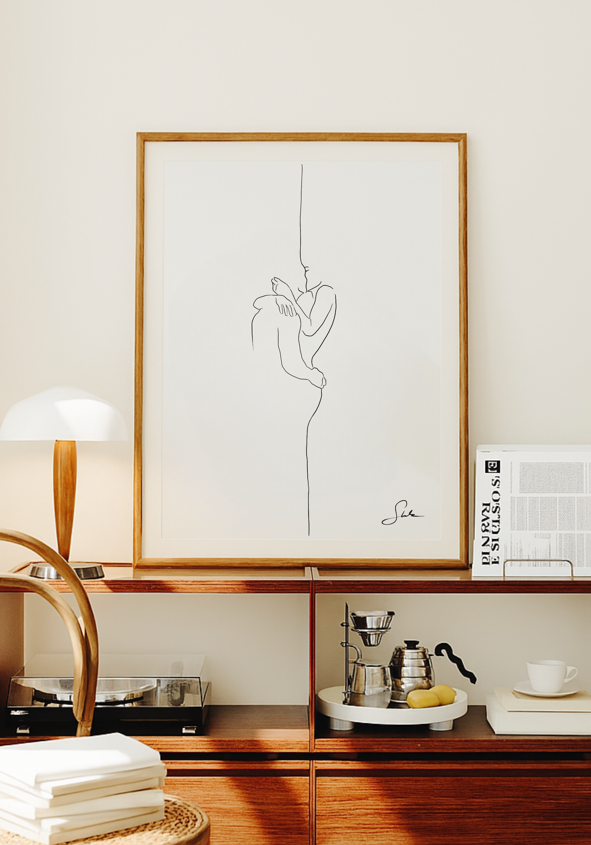 Dieses handgemalte Paar Poster im Line Art Stil zeigt eine innige Umarmung. Ein zeitloses Symbol für Liebe und Verbundenheit. Mit seiner minimalistischen Linienführung ist es ein modernes Kunstwerk, das Eleganz und Emotion in jedes Zuhause bringt.