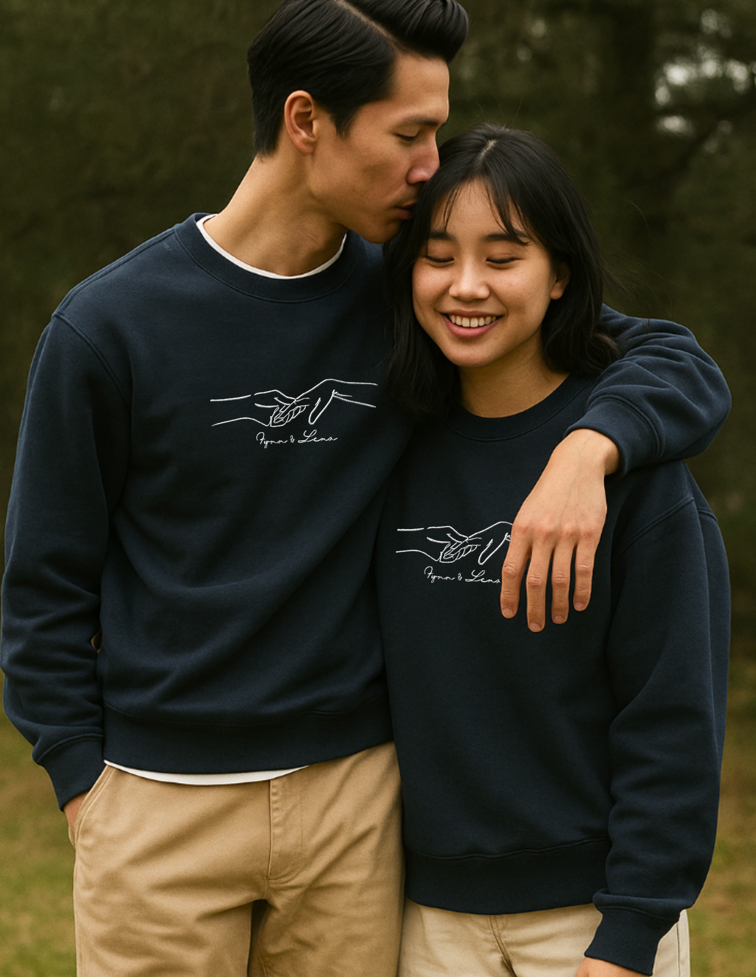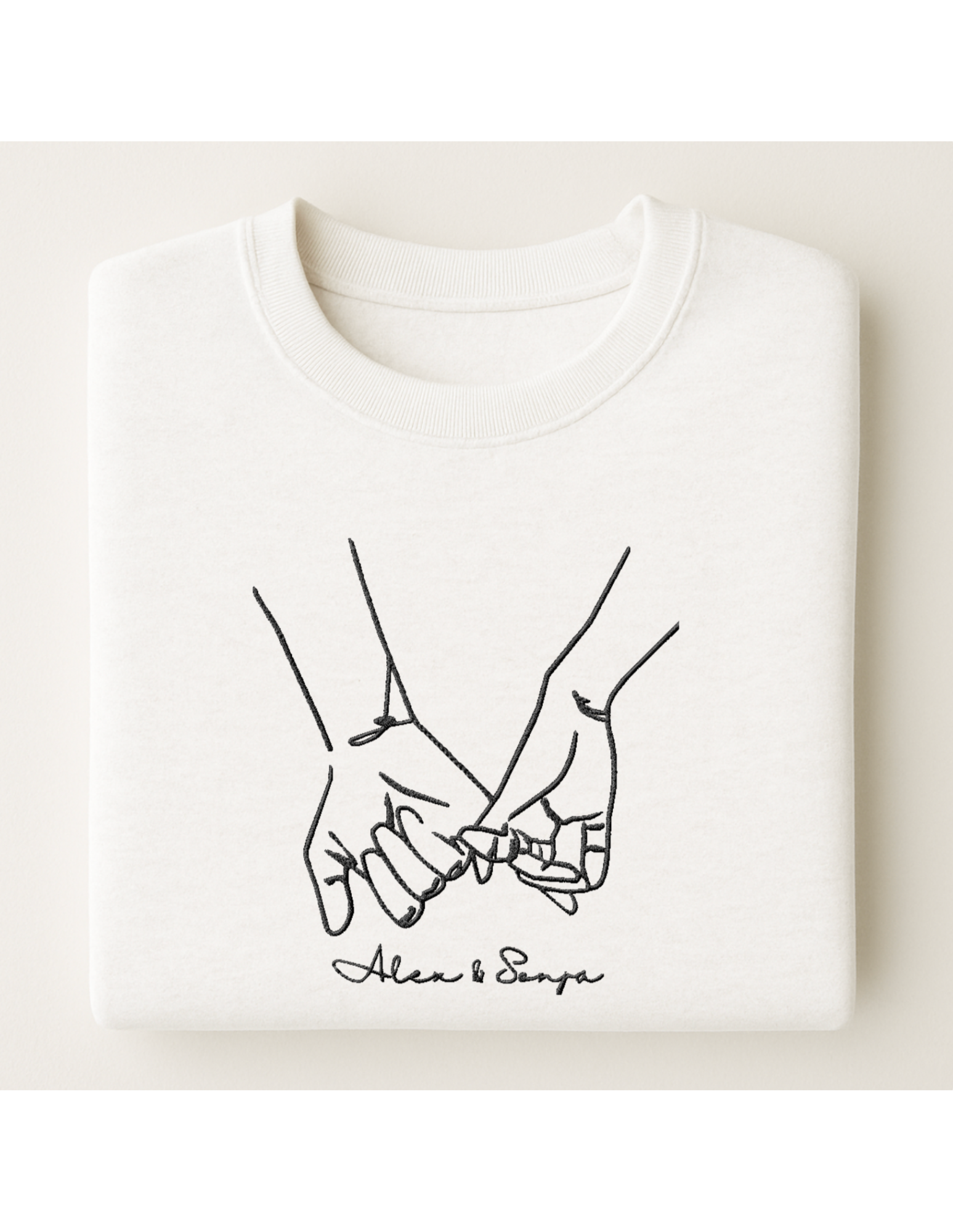 Ein Sweatshirt, der verbindet: Das minimalistische Line-Art-Motiv zweier Hände steht für Liebe, Vertrauen und Nähe. Mit individueller Namenspersonalisierung wird dieser Pullover zu einem einzigartigen Geschenk. Perfekt für Paare, beste Freunde oder als besonderes Weihnachtsgeschenk.